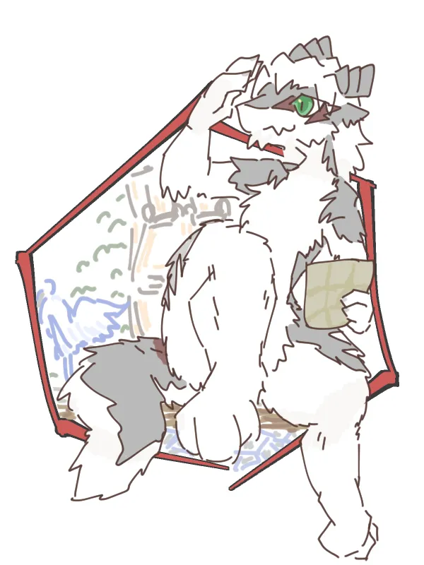 白と黒の獣毛に覆われた竜人種。目の周囲は隈取に似た赤色の稲妻模様。節のついた黒いツノが後頭部から生えている。また、尾の付け根も赤色。